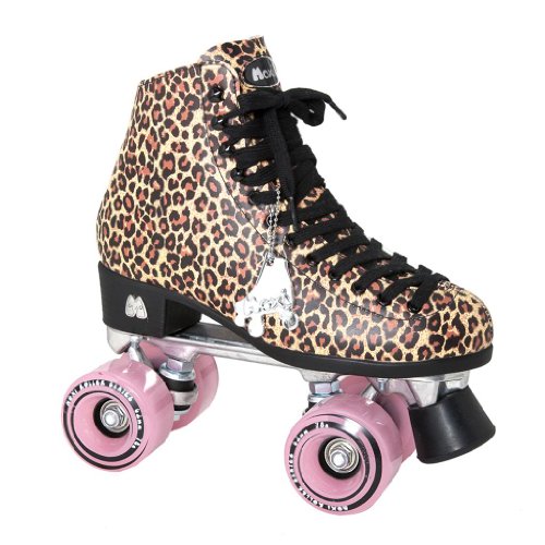 Compare Moxi Ivy Jungle Outdoor Roller Skates Tan Leopard Print with Moxi Juicy Pink Frost Wheels